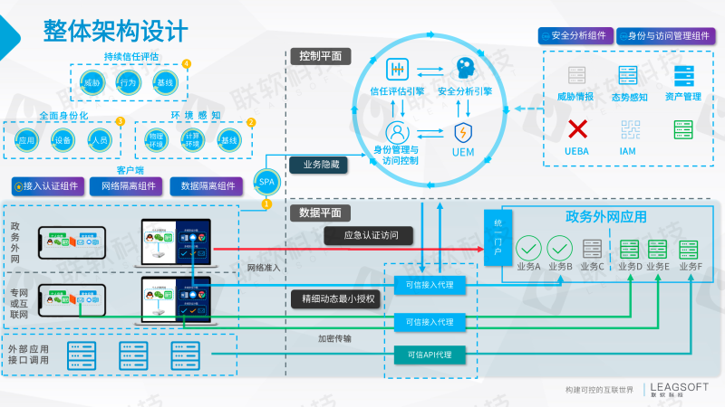 作為Forrester《零信任最佳實踐》白皮書主要參編單位之一、國內率先落地基于“零信任安全”產品的廠商之一,聯軟科技充分利用自身在零信任安全領域的深厚技術實力及豐富的落地實踐經驗,結合多年在端點安全管控方案的積累,為各級政務提供先進、合規的政務外網一機兩用解決方案,解決政務外網應用和終端安全防護難題。