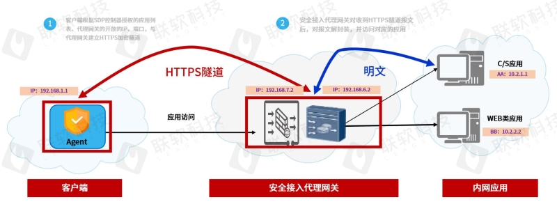應用代理:通過應用代理的方式,對業務系統的真實地址和端口進行防護和隱藏,縮小應用攻擊面,防止政務應用被掃描攻擊、DDos攻擊、注入攻擊。客戶端在獲取到用戶的請求以后,將采用加密技術對數據包進行加密封裝確保鑒別信息、業務數據在傳輸過程中的安全。