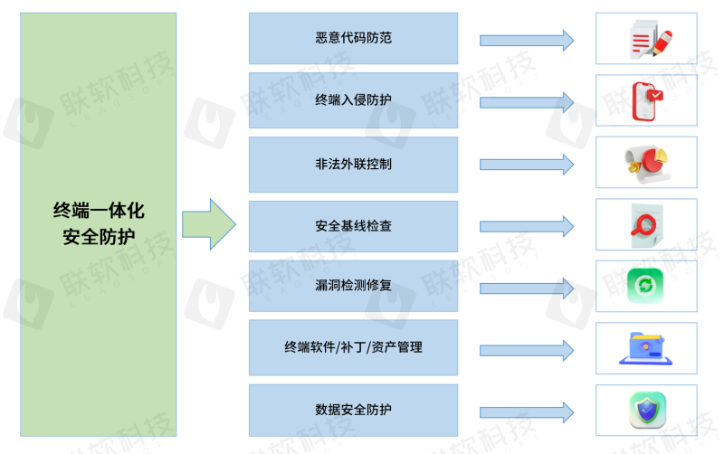 EPP安全:通過安全基線管理、終端補丁管理、終端軟件管理等方式,增強終端安全能力;采用一套管理后臺實現準入認證、網絡隔離、數據隔離和終端安全防護,避免影響終端辦公效率,同時避免出現終端煙囪式建設帶來的相關問題,如兼容難、功能重復等。