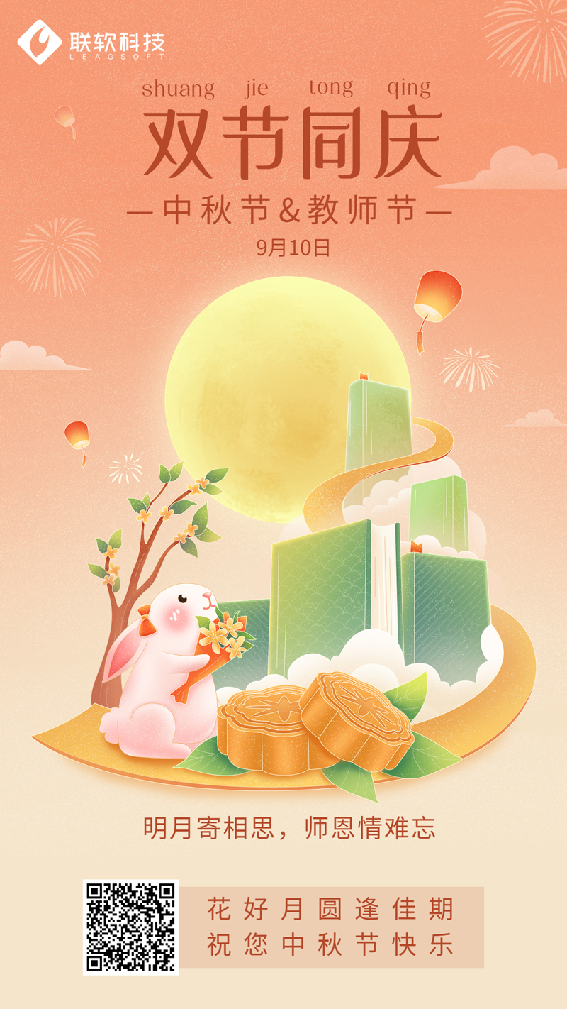 今年的中秋在9月10號,當日也是教師節,花好月圓,雙節同慶!值此中秋佳節來臨之際,聯軟科技祝您中秋節快樂!身體安康,萬事如意,闔家幸福,前程似錦!