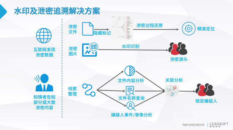 “威懾”是指通過多項安全能力(包括文件追蹤、文件DNA、水印等),強化心理震懾的作用。如今很多企業數據泄密盛行,原因之一便是沒有利用好“人和”這個要素。由于主要泄密人員是企業內部人員,企業可以借助多種專利水印技術,實現數據泄密回溯。同時支持在截屏、拍照、打印時附加明文、隱形等多種形式的水印,通過技術和管理結合,一旦泄密可追溯泄密源頭。