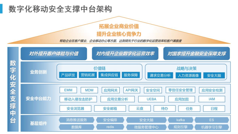 主題分享以企業移動安全關鍵訴求為切入點,探討了數字經濟時代背景下的數字化轉型解決方案以及實踐案例。其中,針對智慧金融的移動展業和移動辦公、智慧醫療、智慧園區、智慧校園、智慧能源以及數字政府等行業領域,現場進行了深入淺出的解析分享。