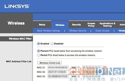 每個網絡設備都具備一個MAC地址,這個地址可用來識別該設備。通過設置MAC地址過濾器,可使預置了MAC地址的設備加入網絡,即便你的網絡設置了密碼。