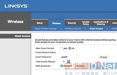 有些路由提供訪客接入的功能。雖然這種功能通常會把你的家庭網絡和臨時使用網絡的訪客隔離開來,但是一些黑客也有能力跨過安全壁壘,訪問整個網絡。如果你不想讓別人訪問你的網絡,最好是禁用這一性能。