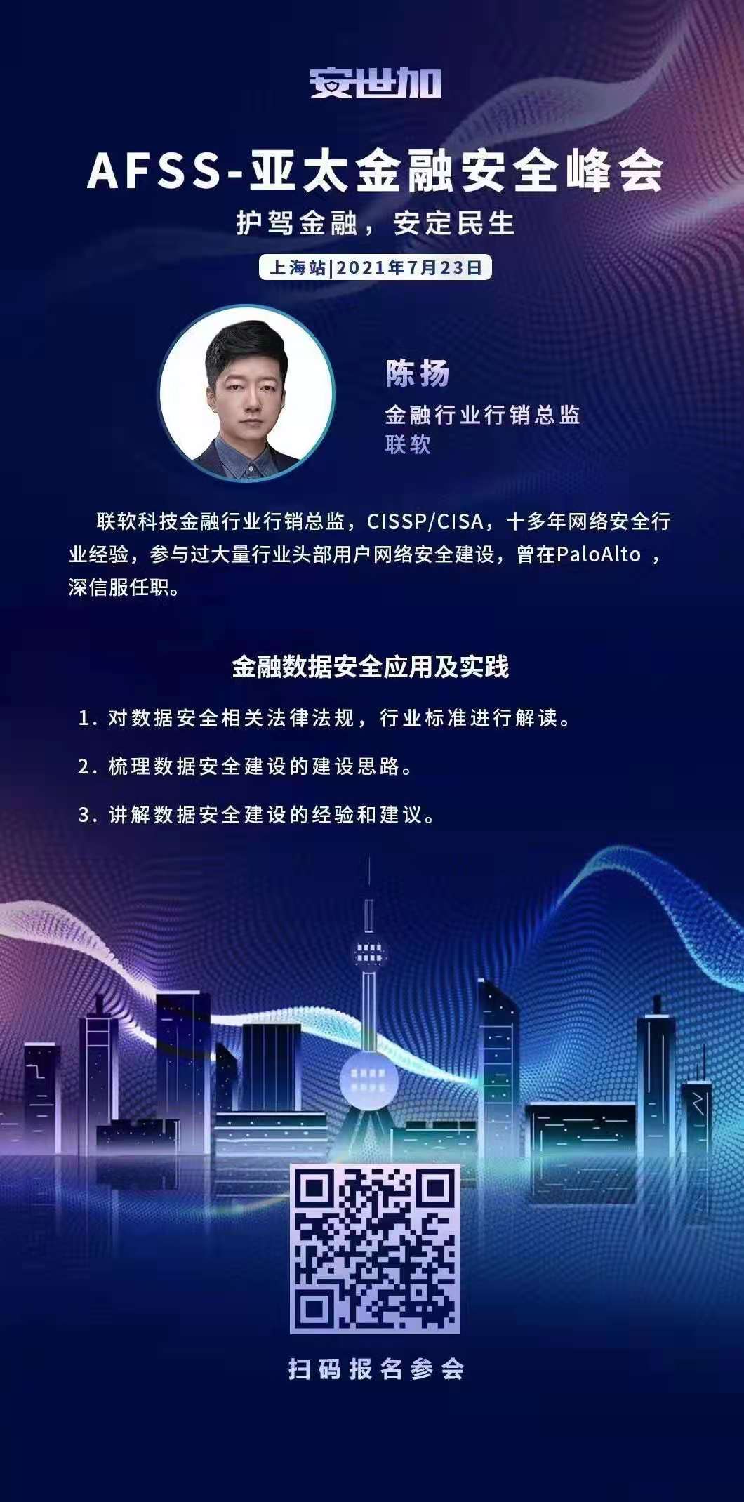 繼首屆AFSS于2020年在北京成功舉辦后,2021年7月23日,安世加確定在上海舉辦第二屆“AFSS-亞太金融安全峰會”。屆時預(yù)計有近100位金融行業(yè)資深安全專家出席,本次峰會秉承“護(hù)駕金融,安定民生”的主題,并結(jié)合當(dāng)下政策與趨勢,相信會為行業(yè)帶來更多最佳實踐和分享。