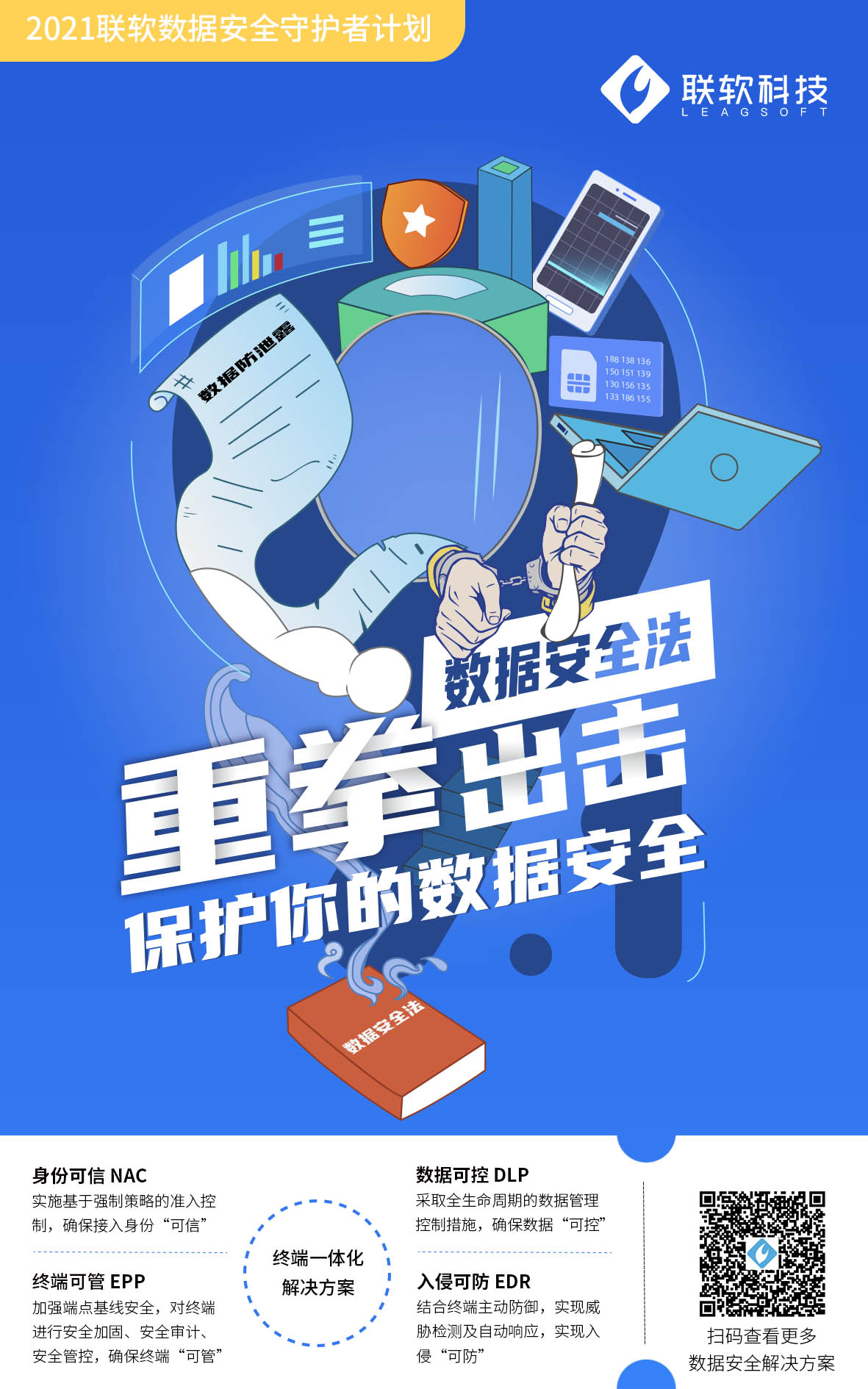 在《數(shù)據(jù)安全法》重拳出擊之下,聯(lián)軟的多種產(chǎn)品,在數(shù)據(jù)梳理和發(fā)現(xiàn)、數(shù)據(jù)防泄密/審批/追溯/加解密、移動遠程辦公安全、網(wǎng)絡數(shù)據(jù)安全綜合防御能力、數(shù)據(jù)安全運維保障等方面保護企業(yè)的數(shù)據(jù)安全,2021聯(lián)軟科技數(shù)據(jù)安全守護者計劃,助力數(shù)據(jù)安全未來!