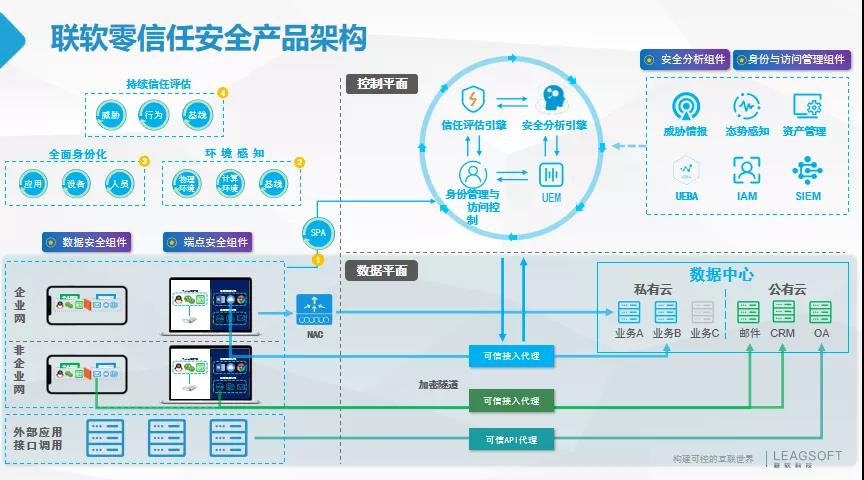 聯軟科技UniSDP基于微服務架構,結合光大銀行的網絡情況,實現了異地雙活數據中心的部署,可靈活彈性擴展,滿足行方高并發訪問及未來多云業務的轉型和發展。此方案通過可信身份、可信設備、可信網絡、可信應用四個方面為光大銀行打造了新一代遠程訪問解決方案。