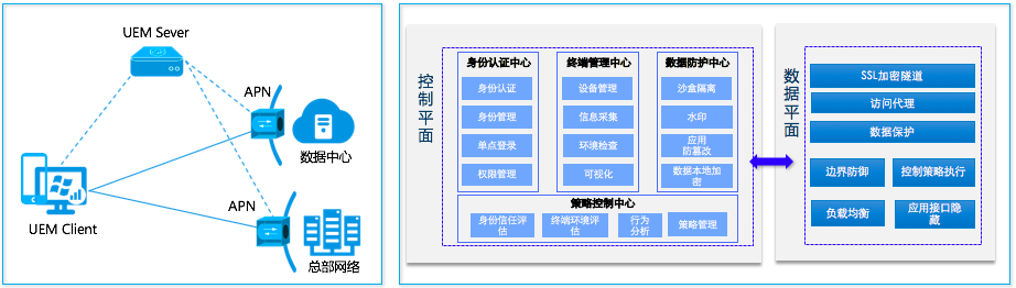 聯軟科技通過在網絡安全、云安全、移動安全等領域的積累,發布了基于零信任架構的統一終端管理解決方案。通過細粒度的訪問控制手段、可視化的策略管理能力和不落地的數據防泄露技術,提供按需、動態的可信訪問,同時基于身份實行嚴格的訪問權限控制和對所有入網設備的安全可控,聯軟UEM支持本地私有化部署和SaaS化部署,最終實現企業的統一終端管控。