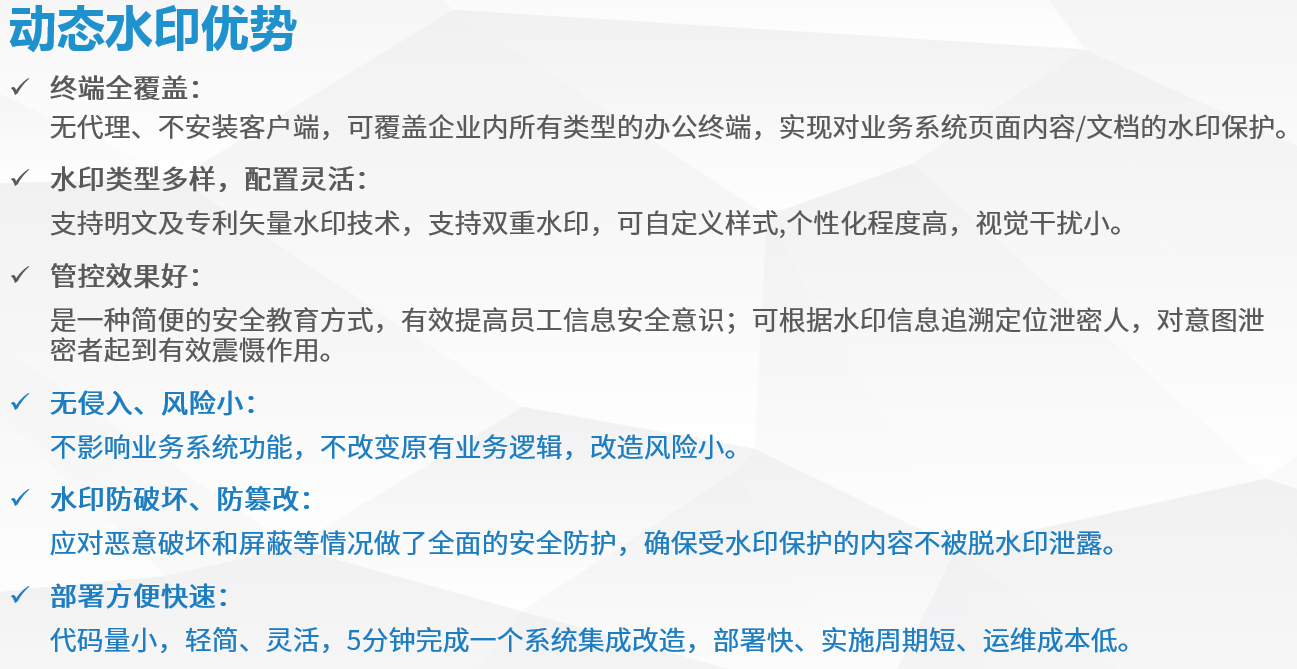水印類型除傳統的靜態水印外,聯軟還研發出來了動態水印技術。